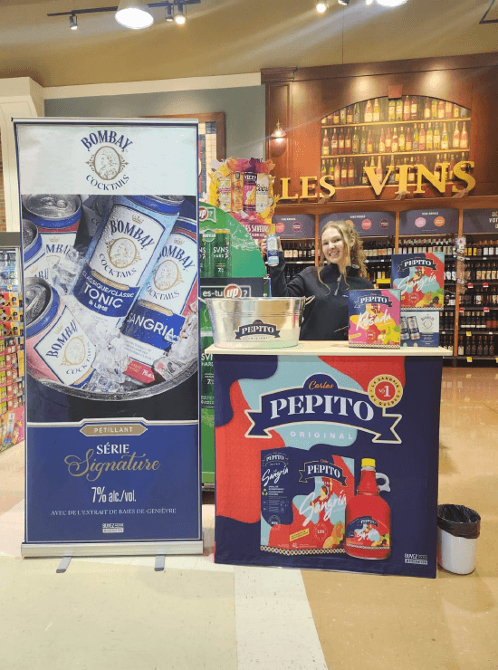 Faire découvrir la gamme de produits Bombay aux consommateurs des épiceries (6 packs, 12 pack mixtes).