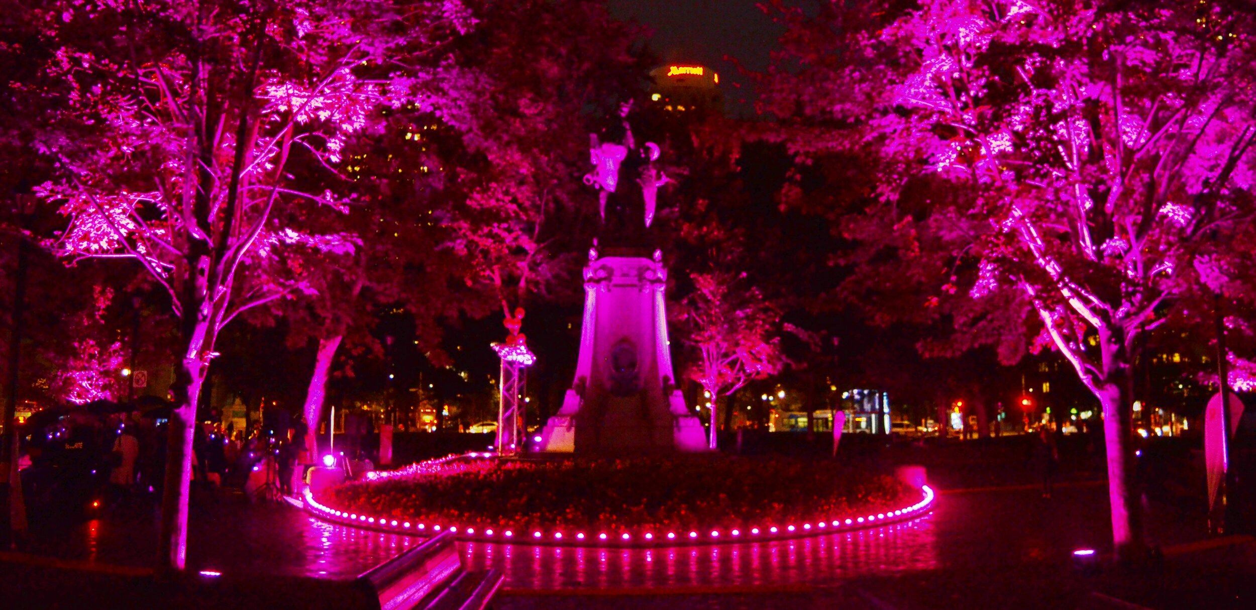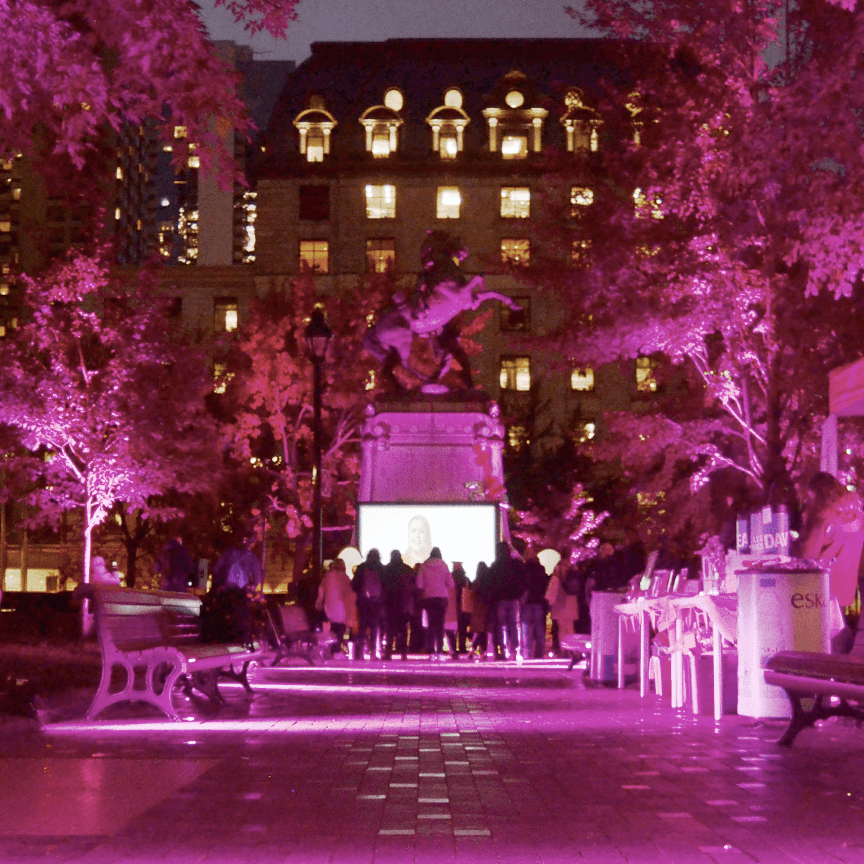Illuminer tout le Square Dorchester de rose, la couleur étendard de la société, pour célébrer ce moment marquant.