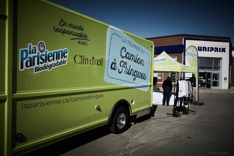 Déploiement d'un camion à fringues à travers différentes épiceries de la province pour y récolter des vêtements et leur donner une deuxième vie.