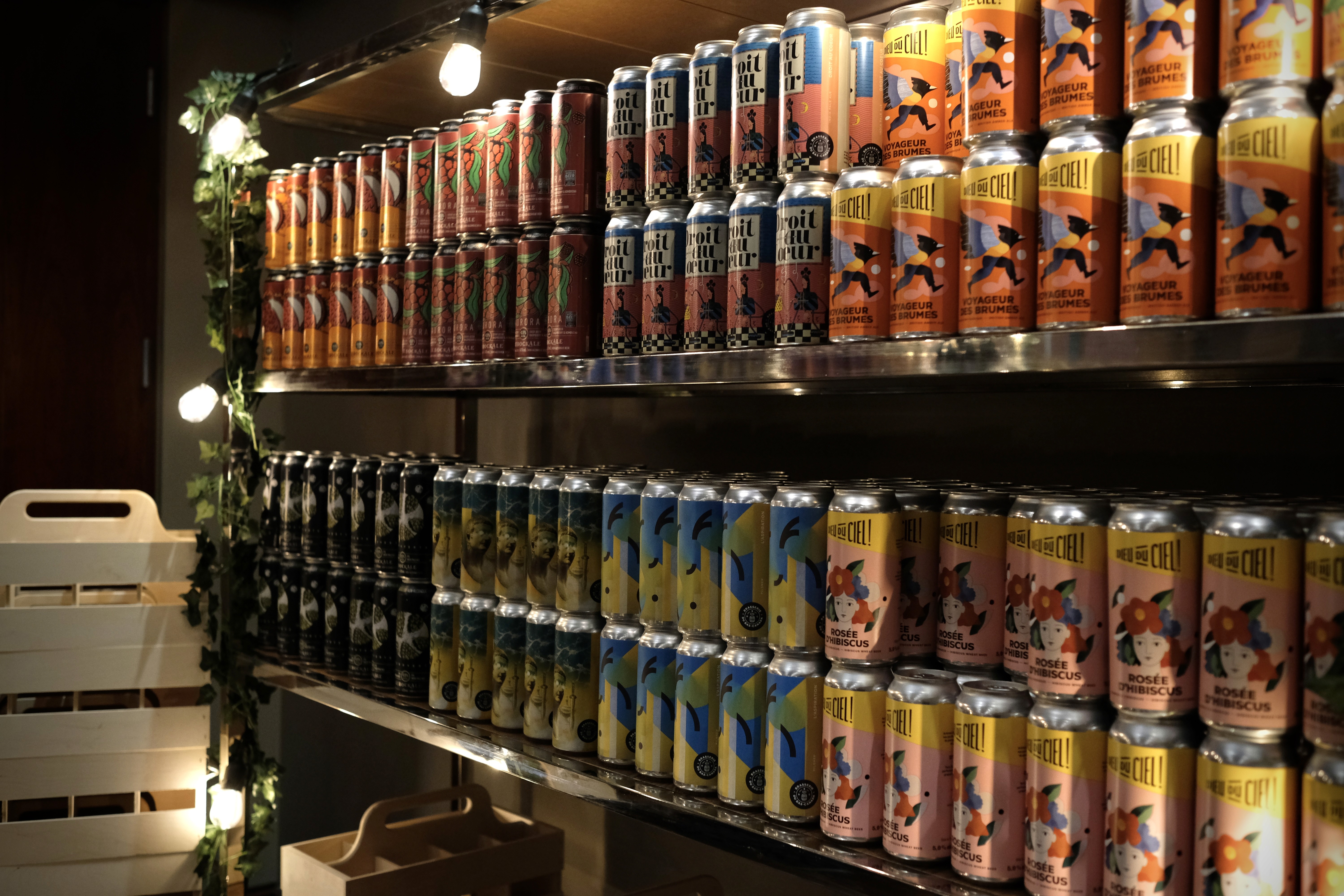 Décor de la salle principale à l'image d'un Biergarden avec une touche locale québécoise.