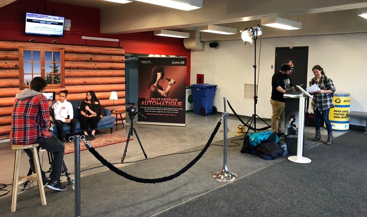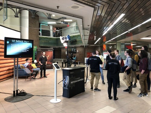 Interviewés par des créateurs (Youtubers) vedettes, les étudiants des Cégeps étaient amenés à partager leurs trucs et astuces pour rester en contrôle face à diverses situations de consommation. Un décor invitant de type "chalet" a été produit/construit afin de créer un effet percutant auprès des étudiants.