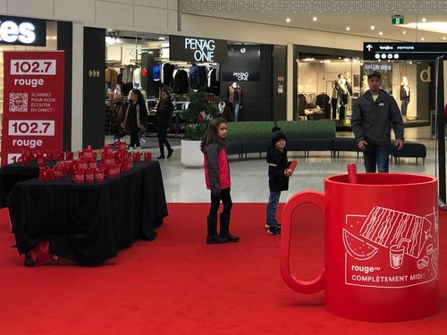 Organiser un concours mettant de l’avant un prix de 500 $ en carte-cadeau du centre commercial visité auprès des consommateurs qui acceptaient de faire partie d’une infolettre de Rouge FM.